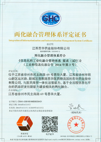 公司两化融合管理体系贯标工作取得阶段性成果 2016-04-12 Font Size 近期公司收到了北京国金衡信认证有限公司颁发的《两化融合管理体系评定证书》,标志着2015年公司全面推进的两化融合管理体系贯标工作取得了阶段性的成果。 此次评定的范围是“位于江苏省徐州市民主南路69号九游会j9大厦、江苏省徐州市铜山新区运河路、新城区商聚路九游会j9医药物流园的九游会j9股份有限公司,与医药商贸一体化运营能力,基于全流程信息化平台的药品研发创新能力建设相关的两化融合”。